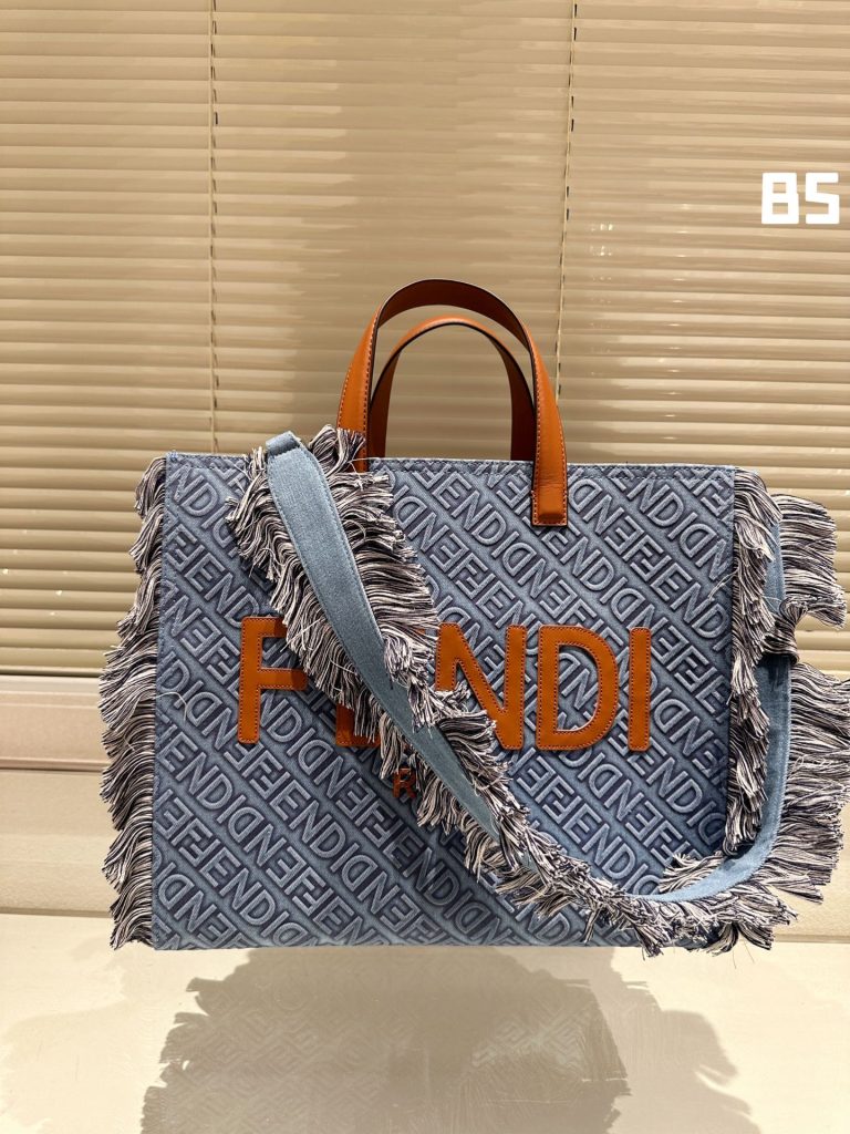 Die Denim-Tasche von Fendi mit Co-Branding kann über eine Schulter oder quer über den Körper getragen werden.