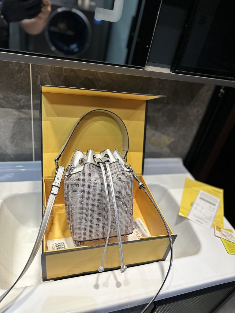 Auf den Straßenbildern der Mailänder Modewoche 2022 ist die Tasche, die am häufigsten von modischen Menschen getragen wird, wahrscheinlich die Bucket Bag von Fendi. Sie ist mit einem Kordelzug und Fend-Logo-Akzenten aus Metall versehen. Ausgestattet mit zwei abnehmbaren Schulterriemen, einem langen und einem kurzen, kann die Tasche sowohl über eine Schulter als auch über den Körper getragen werden. Klassische Stoffe haben einen lässigen Streetstyle. Auch Prominente wie Qi Wei und Rosie tragen sie, wenn sie auf der Straße unterwegs sind. cg Größe: 12