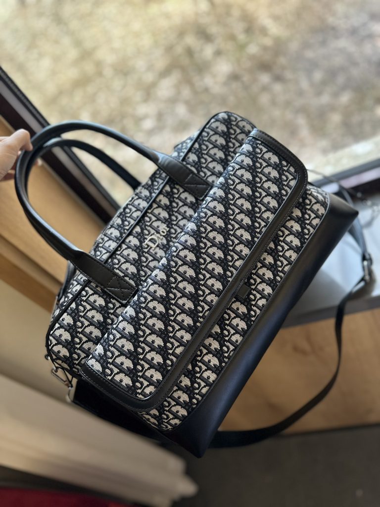 Dior-Tiertasche und Hund sind unzertrennlich