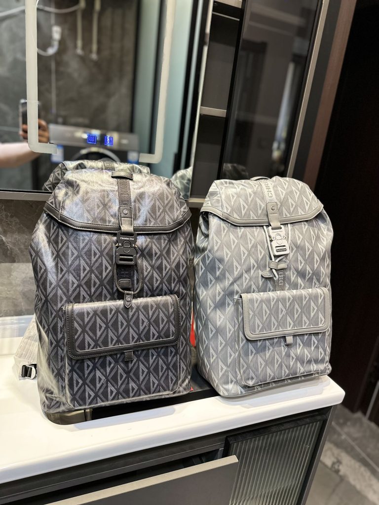 New for this season, the Dior Hit the Road backpack combines contemporary style with Dior’s couture spirit. Crafted from Dior gray CD Diamond canvas, inspired by the Dior archives, it features smooth calf leather details, CHRISTIAN DIOR’s signature jacquard straps, a roomy main compartment and a large front flap pocket. Practical and versatile, it’s perfect for any casual look. The finishing touch.
