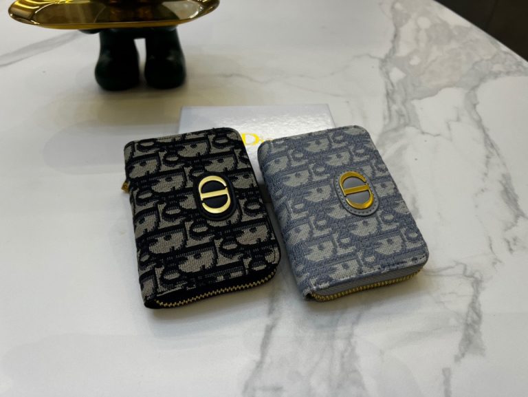 Size: 12*8. Description: The latest models are shipped from Dior counters! Wallet in Dior Oblique jacquard canvas with blue heifer leather details, antiqued gold-tone hardware
