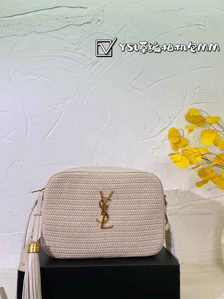 Sealed airplane box packaging YSL Saint Laurent raffia camera bag