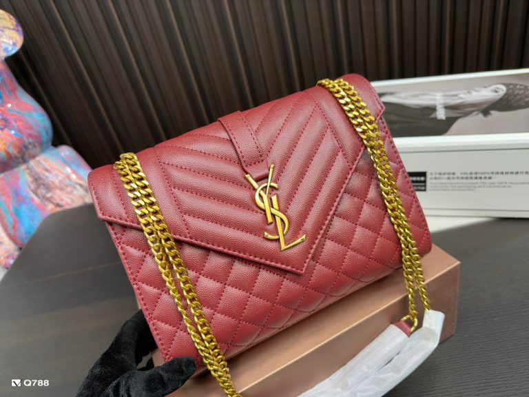 Saint Laurent envelope bag, YSL bag, ENVELO bag real shot. Today I will update you with the ENVELOPE envelope design, which is simple and fashionable with a silver chain. The square shape of the bag exudes a mature temperament, suitable for commuting and if you like a slightly larger capacity, you can carry it on the shoulder or crossbody. Grained cowhide, wear-resistant and easy to care for. Size: 25.4.17