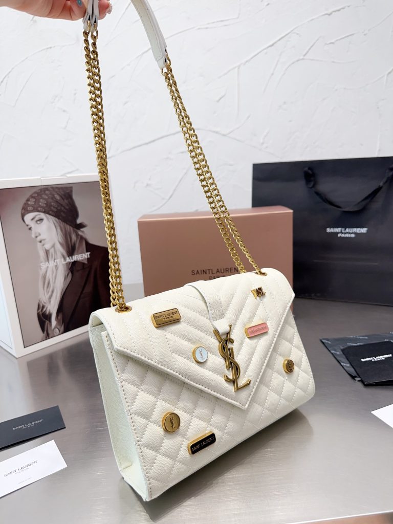 Sac à chaîne ysl Sac à chaîne et à glands KATE en cuir texturé La dernière, la meilleure et la plus pratique des tailles 20cm ! Le logo Y est au cœur de cette série. M. Yves Saint Laurent a invité l'artiste Cassandre à le dessiner. Les trois lettres sont superposées, ce qui est à la fois simple et avant-gardiste. 100% cuir de vache importé avec texture caviar, résistant à l'usure et aux rayures ! Un classique indémodable ! Aucun des sacs à glands de Y n'oserait dire qu'il est à la mode !