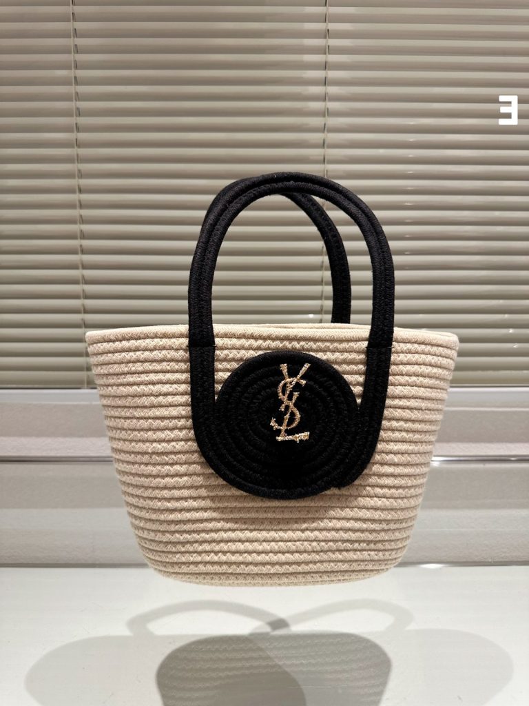 Ysl Saint Laurent Chanel Chanel summer new straw bag Basket Bag vegetable basket woven leather shopping bag beach vacation handbag. Size: 23 21cm