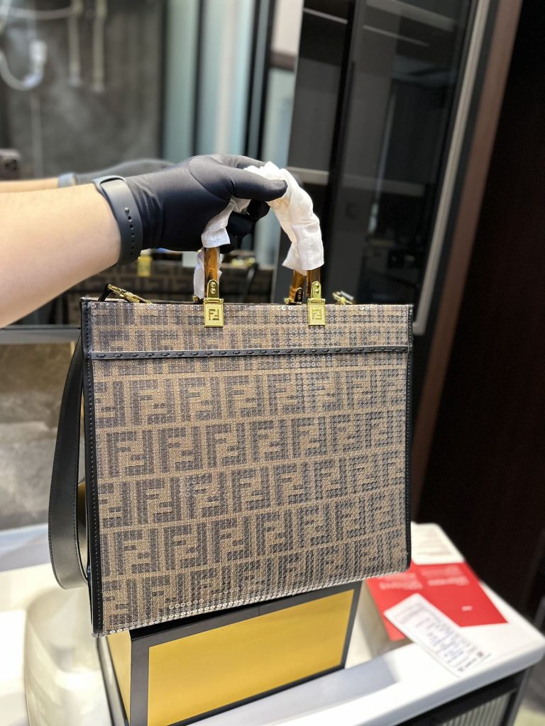 Fendi sequined tote bag is so popular this year! This bag is also very beautiful! The bag has a large capacity and is suitable for daily use. It can accommodate everything at the same time. It is versatile and can be held in different styles. It looks great with a windbreaker! Size