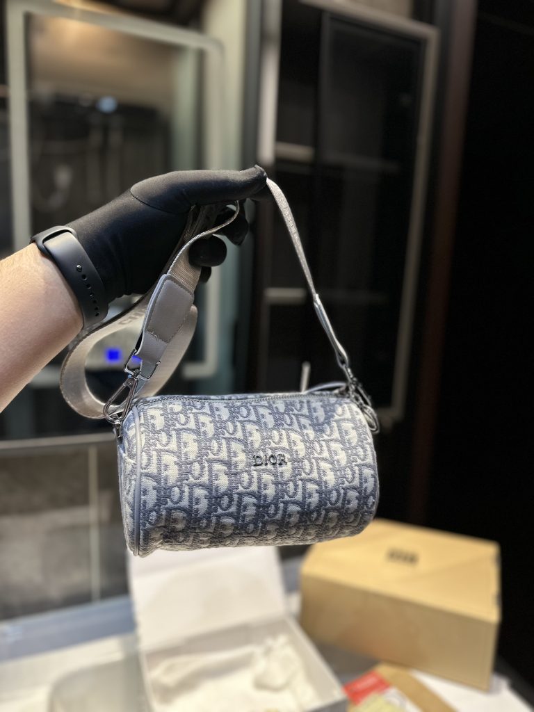 Dior/Dior denim and leather retro cylindrical bag, crossbody bucket pillow bag for men and women, LoGo hardware j size 2